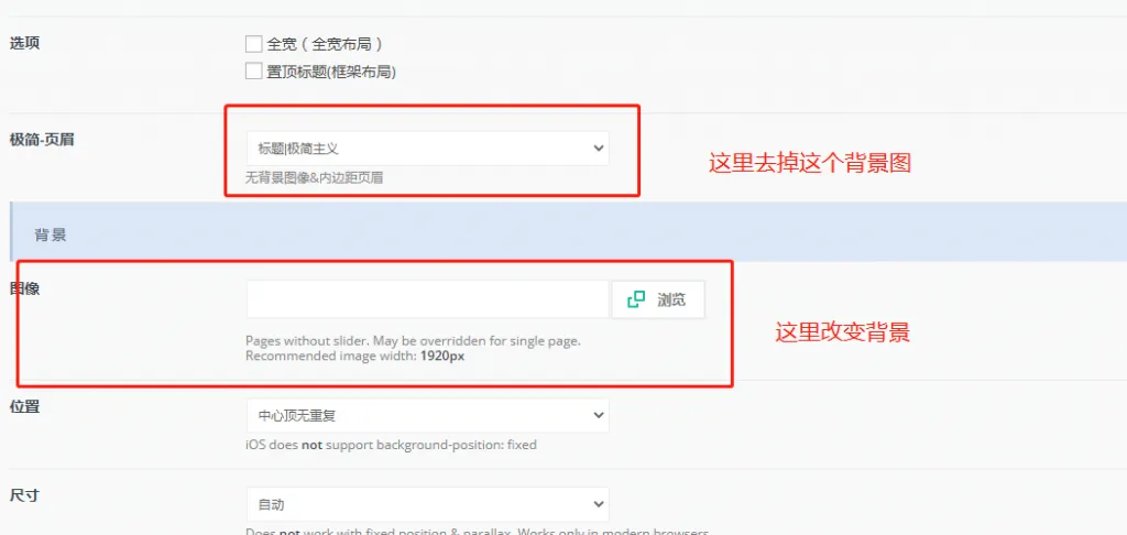 同样的,我们在极简-页眉的地方可以把这个图去掉,这里同样也是去掉首页上部图像的地方,详情可以看下betheme如何去掉顶部菜单与内容之间的空白区域;