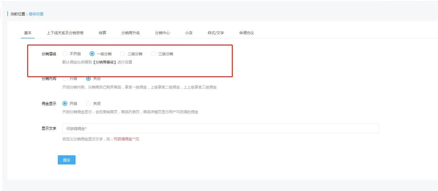 首先需要设定分销层级,是一级分销,还是二级、三级分销?