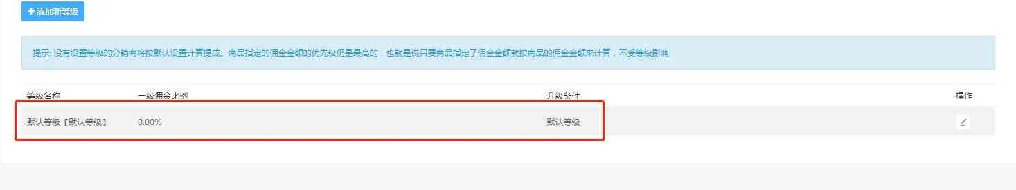 当然了,分销商我们也可以设置等级,根据等级不同获得更高的佣金奖励,以此来鼓励推广者。