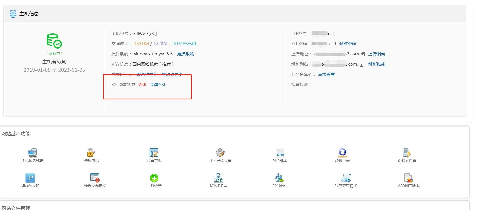 如图所示,我们看SSL部署状态,一般是关闭的,我们直接点击后边的部署SSL