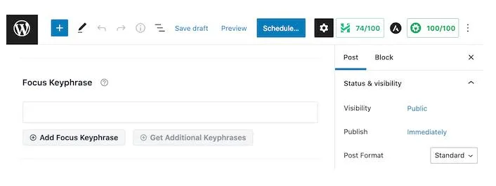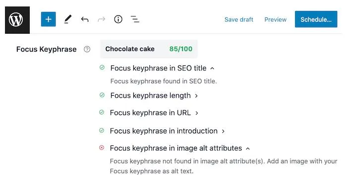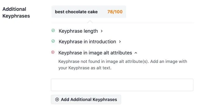 在编写内容时,您可以将目标关键字输入到 AIOSEO 等工具中。然后,AIOSEO 将帮助您针对此焦点关键字优化您的内容。