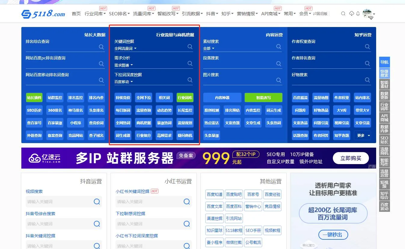 如果针对国内百度引擎,那么以上插件明显不够看,我们依然可以通过5118网站的关键词工具来完成关键词查询、布局等工作