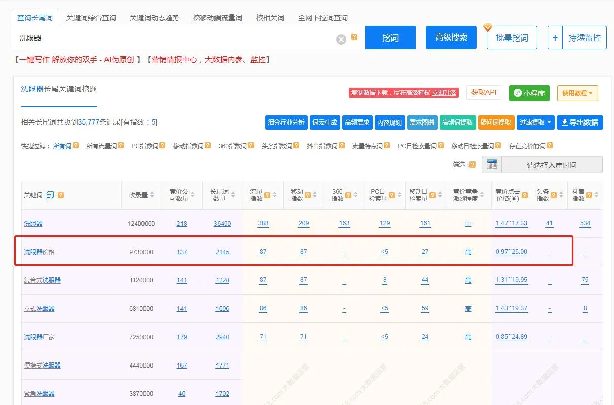 通过属于主关键词,可以分析出相关词的热度,指数,竞争大小,等等,甚至可以通过需求图谱挖掘客户感兴趣的关键词: