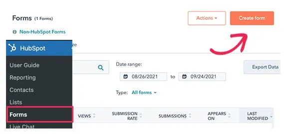 您可以通过访问HubSpot » 表单页面并单击“创建表单”按钮轻松创建表单。