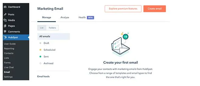 HubSpot CRM 带有内置工具,用于在您的 WordPress 网站上收集客户数据并将其添加到您的联系人列表中。这包括表单、实时聊天和电子邮件。