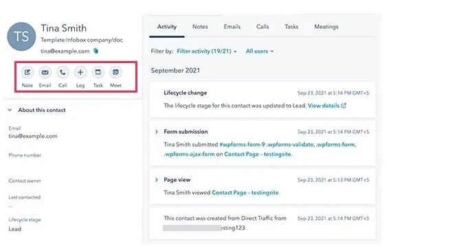 如果您已经在您的网站上使用表单插件,例如WPForms,那么 HubSpot 将自动检测这些表单提交并将它们添加到您的联系人中。