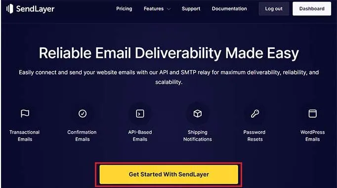 首先,您需要访问 SendLayer 网站并点击 “开始使用 SendLayer “按钮。