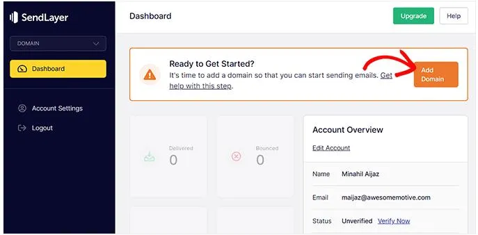 要查看域名授权状态,请前往 SendLayer 控制面板,点击左侧栏中的 “设置 “选项卡。
