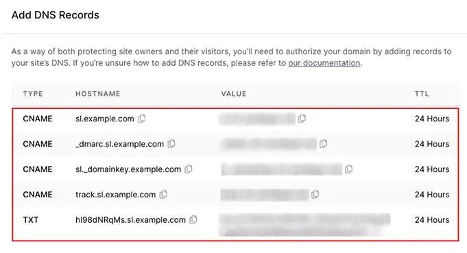 现在,您需要将这些记录逐一复制并粘贴到您网站的 DNS 设置中。