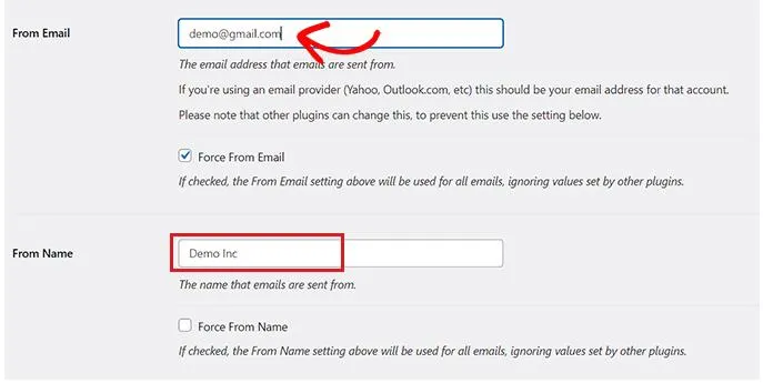 如果您希望整个网站的发件人电子邮件相同,只需勾选 “强制发件人电子邮件 “框即可。